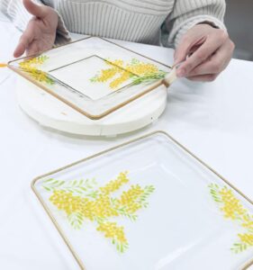 グラスペイント ワークショップ ミモザスクエアプレート