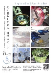 September25ArtStudio(セプテンバー25アートスタジオ)は、フランスの絵具会社Pebeo社より技術・技法を認められた日本で唯一のガラス絵付けのマスターティーチャー遠藤綾子主宰の「グラスペイント」専門のアートスタジオです。30周年を迎えました!