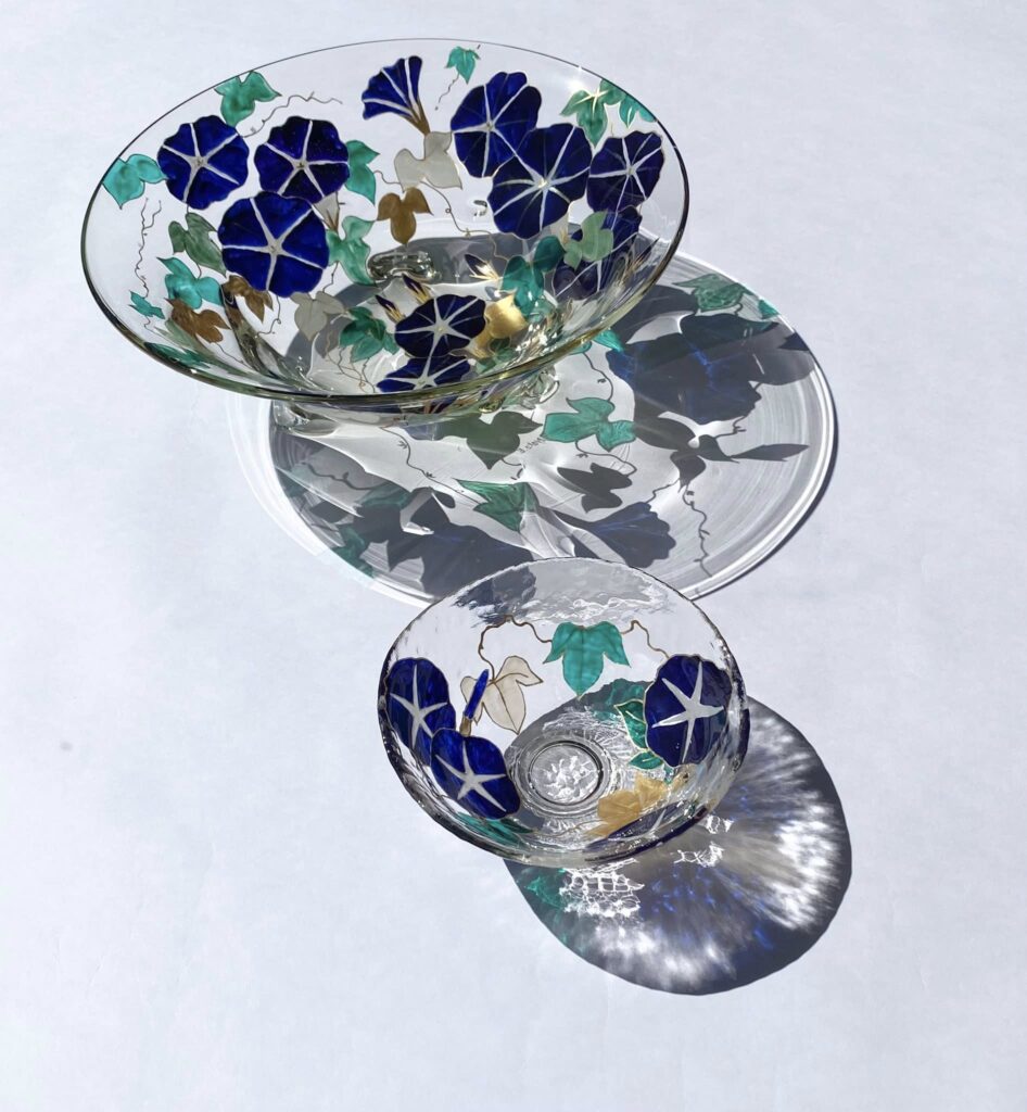 絵付け硝子抹茶茶碗