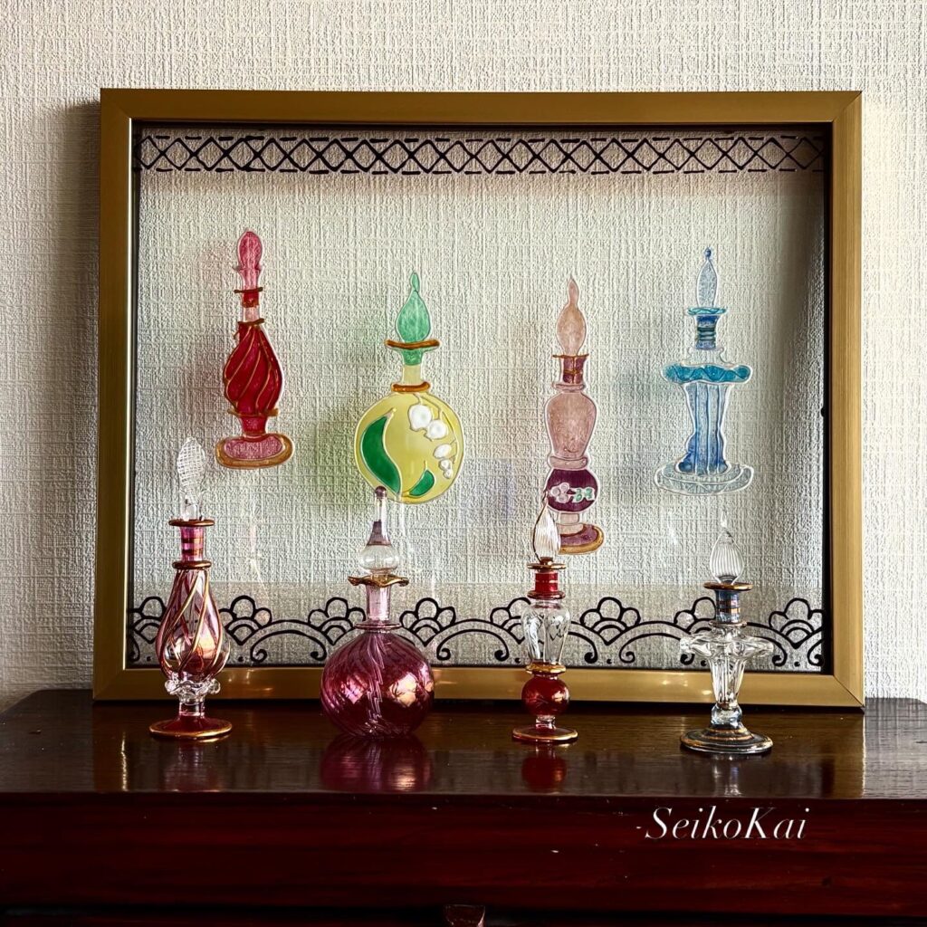 聖子さんはインテリア関係のお仕事をされており、海外のオブジェやガラスの香水瓶をコレクションされるほどお好きで、その世界観を修了課題のデザインに取り入れられました。