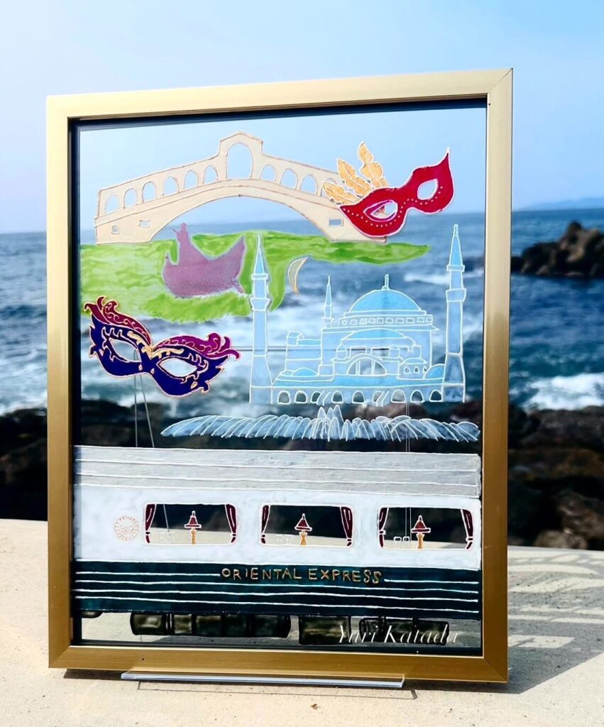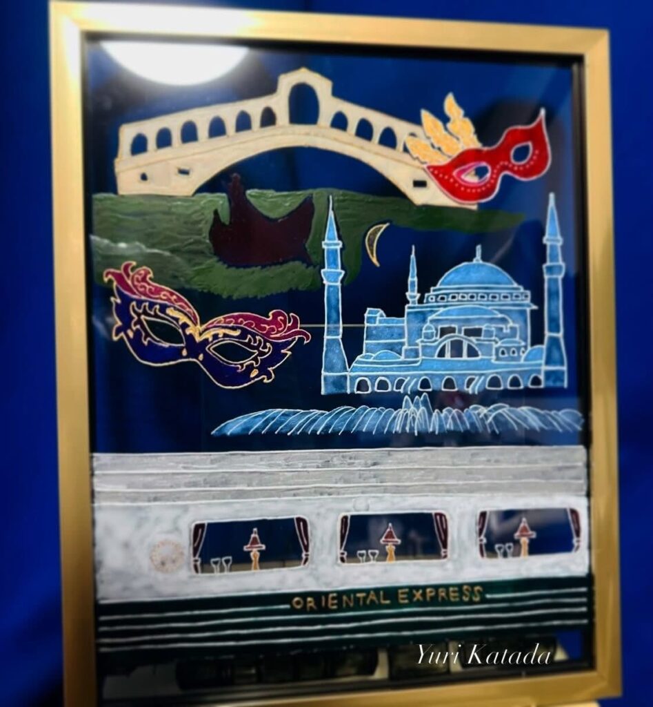 豪華列車オリエント急行に乗り、イスタンブールやベネチアのカーニバルを訪れる情景をイメージして制作しました。