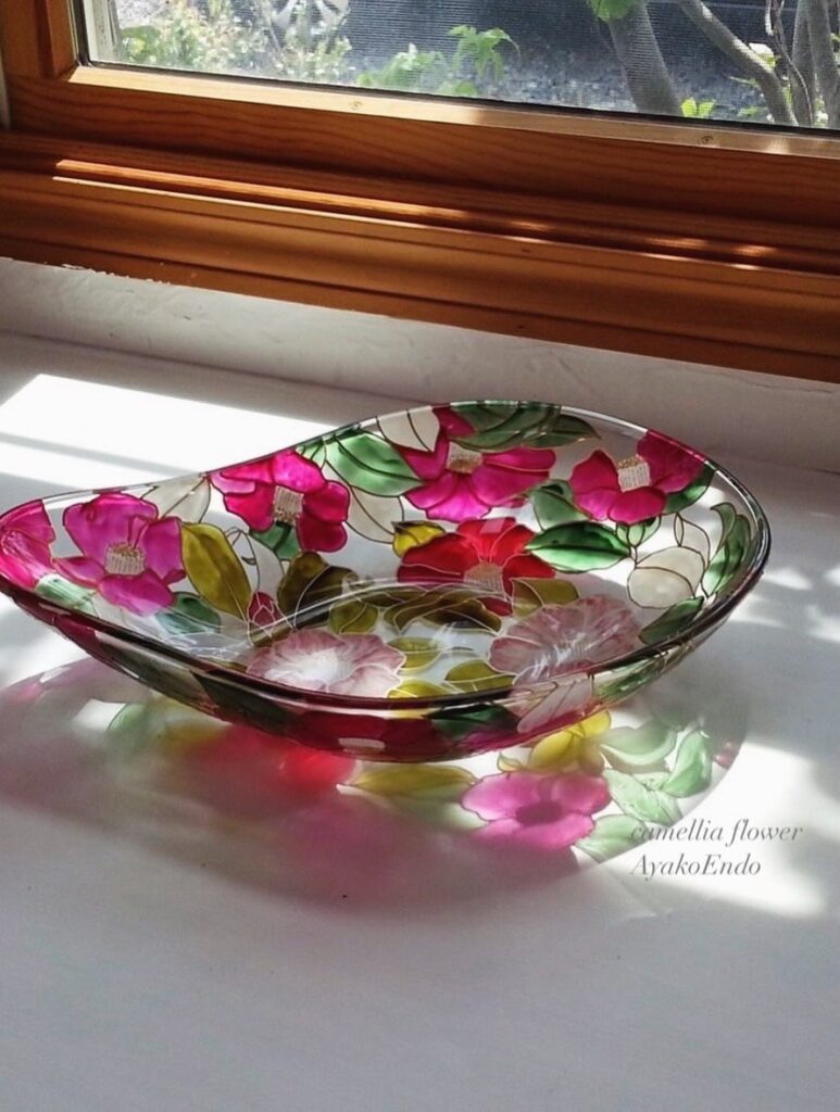冬のお散歩の楽しみは、家々に赤く咲く椿を愛でることですね ガラス絵付けを始めた頃に、最初に描いてみたいと思ったモチーフでした。 初代のピンクの椿の硝子大器は、椿がお好きな方のもとへお届けとなりました。 新作 【 椿 耐熱硝子抹茶碗 】 台湾の展示会では、椿をお気に召してくださった、茶道をたしなまれお着物姿がとても素敵な女性の方のもとへ ありがとうございました。 公式オンラインショップhttps://september25.thebase.in Related posts: 【ご来場ありがとうございました】東京キモノショー in 台湾 新作【葵黒染耐熱硝子抹茶碗】 新作【菊文様硝子抹茶碗】 【7月新潟・8月東京ワークショップ】プロヴァンスの色彩で描く《癒しのラベンダーガラスドーム》 ← 新作|馬レザーコサックバッグ・白牡丹 黒帯地オリジナルバッグ 【着物作品】 →